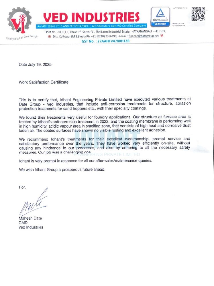Operating near the coast, corrosion has always been a challenge for us. IDHANT’s anti-corrosion treatments provided a lasting solution, extending the lifespan of our structures. Their team’s knowledge and commitment are commendable.
